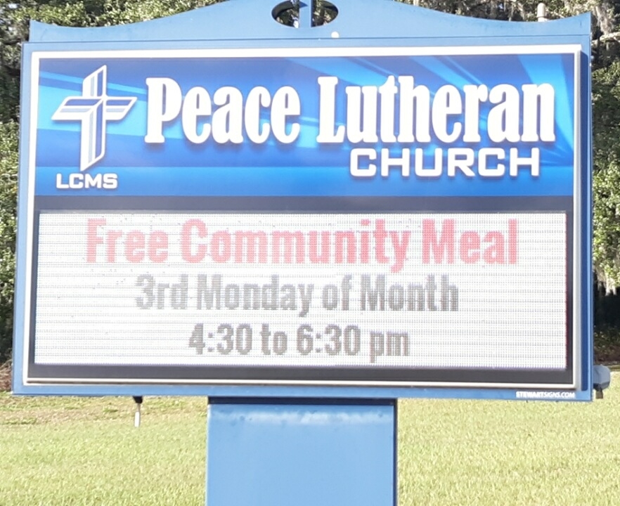 Peace Lutheran was established 60 years ago as Rainbow Lakes Lutheran Church, in 1963. The church was moved to its present location in 1988, to better serve the Dunnellon area. The new building was constructed by Laborers for Christ with the help of members of Peace.